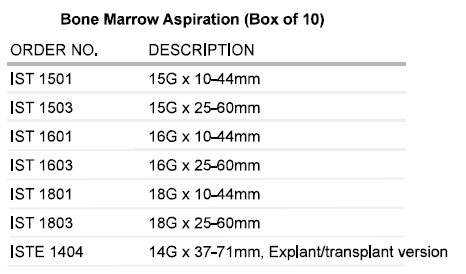 Bone marrow Aspiration system to be used either in the sternum or iliac crest.